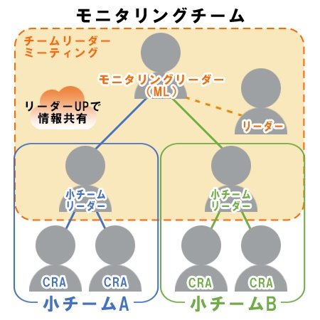 週に1回、月曜日の午前中にチーム会議を実施しています。モニタリングリーダー(ML)からの連絡やチームとしての進捗確認、認識のすり合わせ、疑義解消の時間としています。