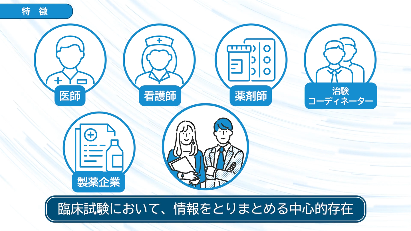 治験の準備段階から終了まで、実際に医療機関に出向く機会も多く、臨床現場に近い職種です。