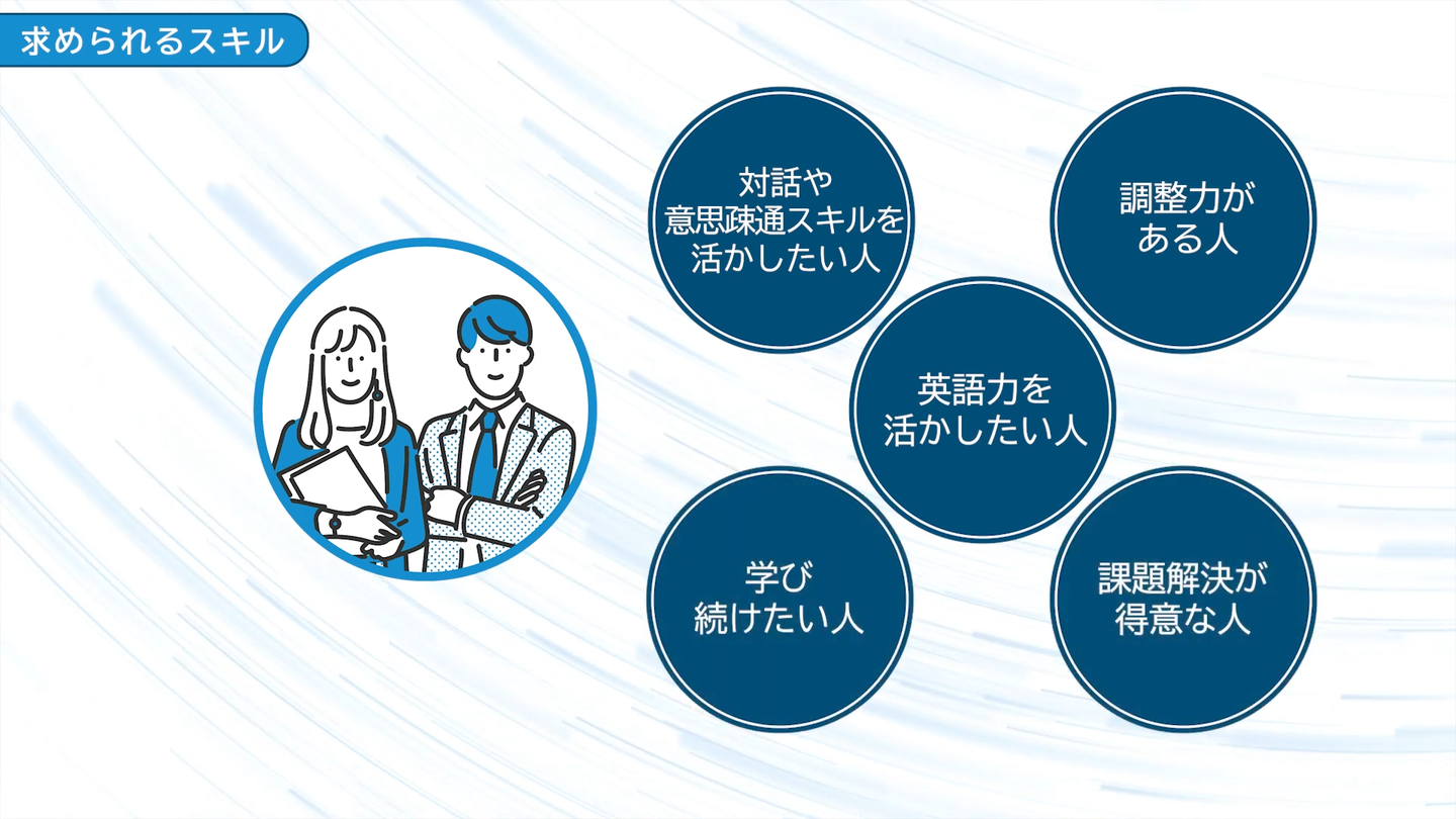 また、コミュニケーションスキル、調整力、英語力を生かしたい人はもちろんのこと、意欲的に学び続けたい人や、課題解決が得意な方も臨床解発モニターの仕事に向いています。
