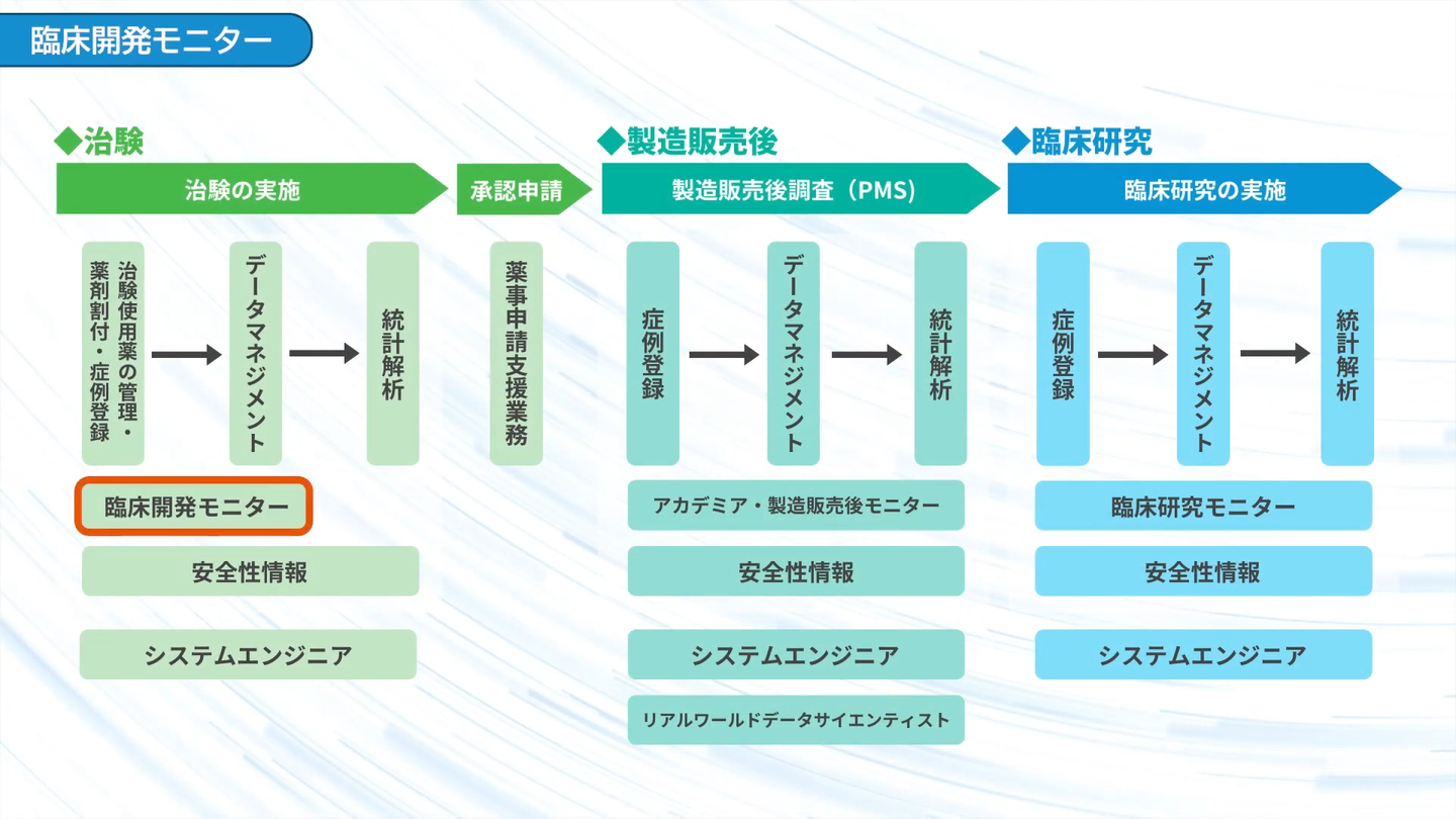「臨床開発モニター」は、新薬開発に欠かせない「治験(臨床開発試験)」において、定められた手順を遵守していることや関連法規・省令に則り適切に行われていることをモニタリングする職種です。