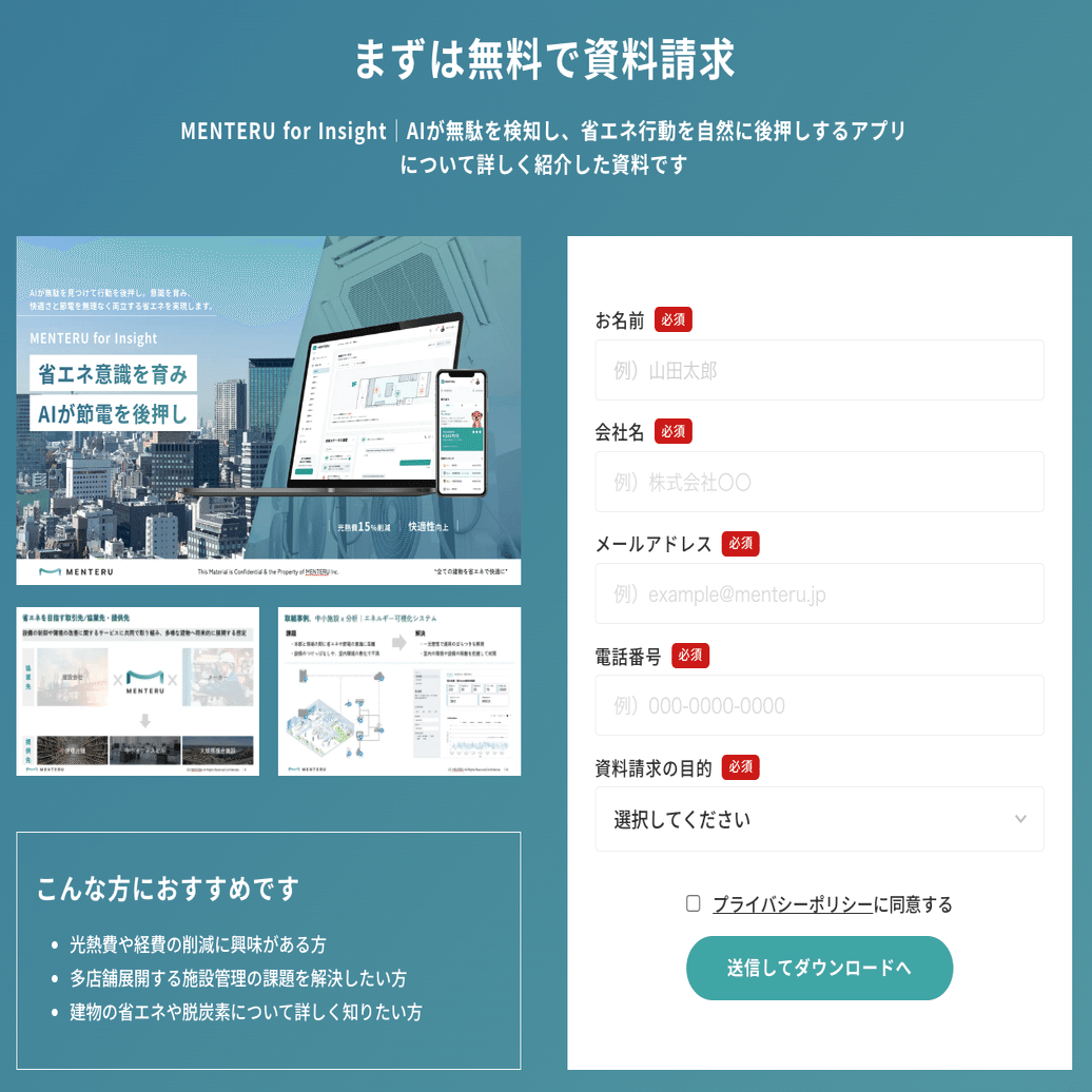 このたび、新サービス 「MENTERU for Insight」 の紹介ページを公開しました。建物の運用・管理に携わる皆さま、そしてエネルギーの最適化や快適性向上に関心をお持ちの方に、ぜひご覧いただきたい内容です。