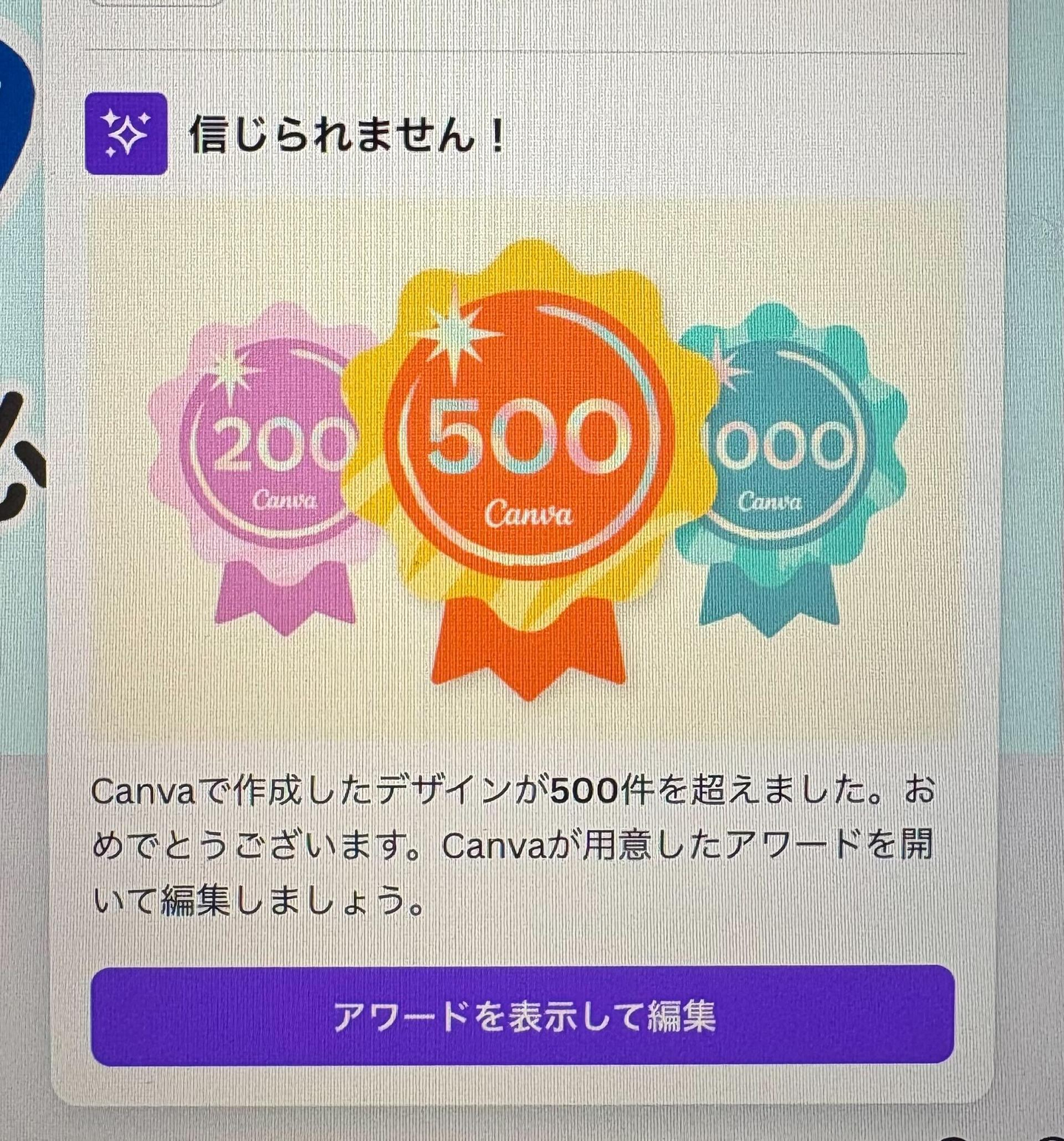 Canvaの作成数は、ちょうどこの前500を突破したとの通知が。
