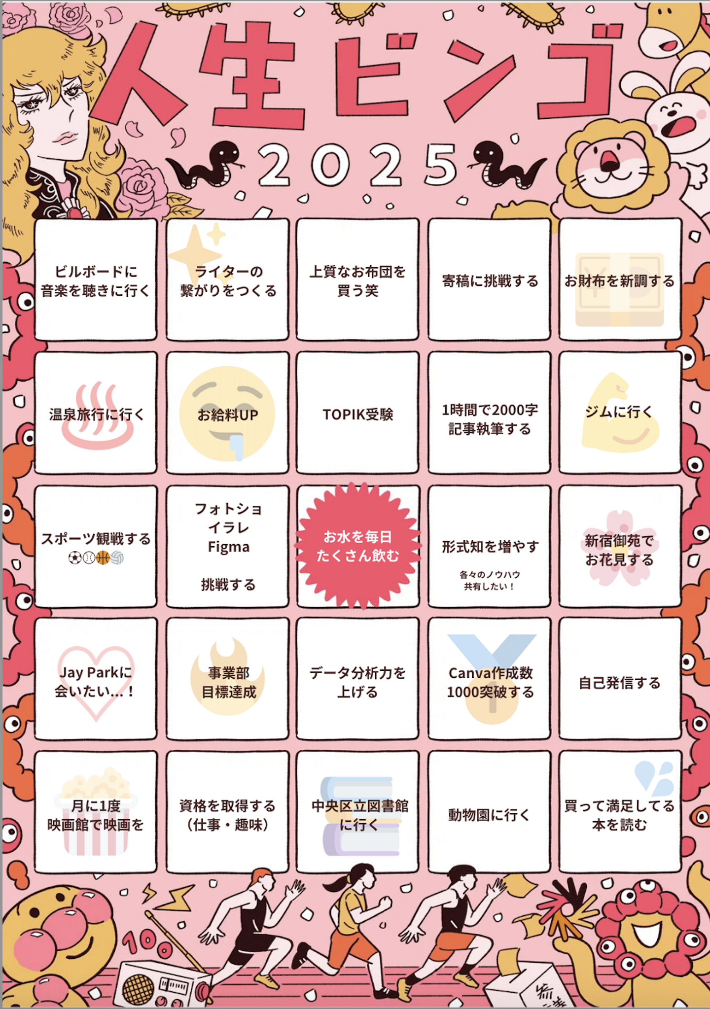 漫画家のうえはらけいたさんが作成をしたもので、ビンゴ形式で一年の目標をリストアップするものです!