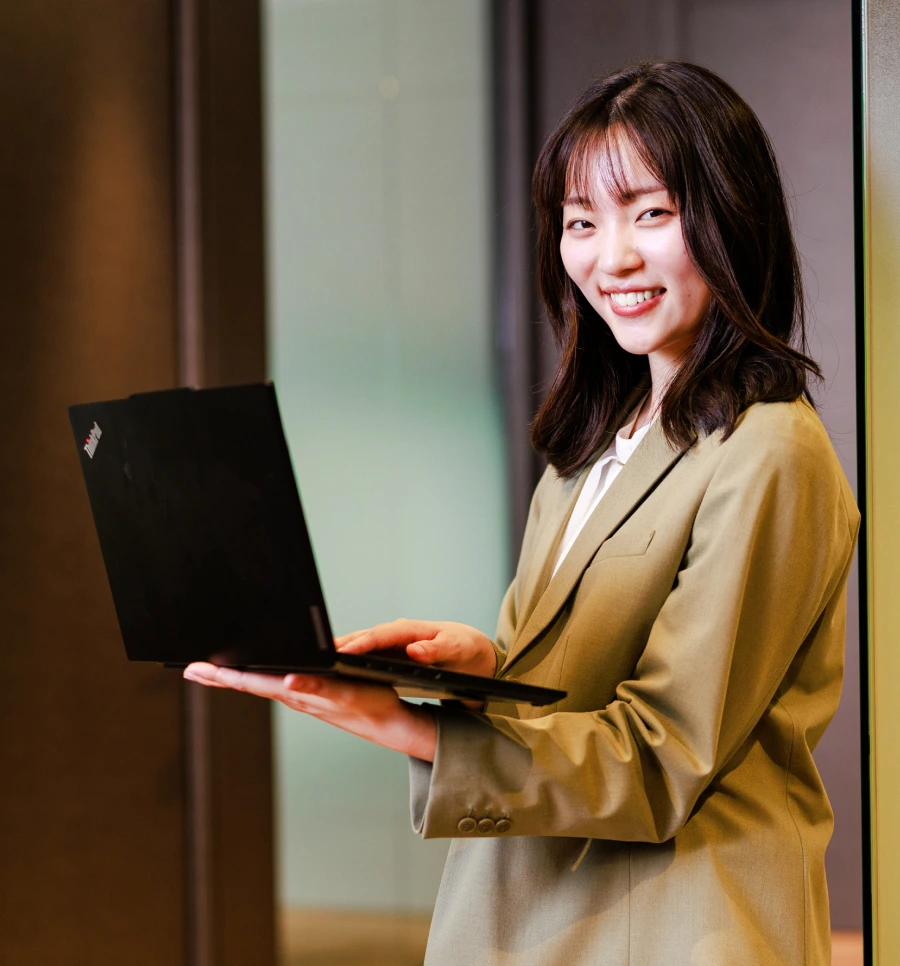 大学時代に就職活動がうまくいかず、アパレルや雑貨店などで接客を続けながら正社員への道を探していました。 人と接することが好きだったので営業職を希望し、地元の福岡で働ける会社を探していた時に出会ったのが、ハンディ株式会社福岡支社の求人でした。面接では営業未経験であった私に、太田社長が「頑張ってみたら、何か得るものがあるよ」と温かい言葉をくださったことに加え、「最適な選択肢を提供して、高校生の就職をサポートする」という事業内容に自身の就活経験を重ね合わせて深く共感。「ここで働けば、きっと成長できる」と感じて、入社を決意しました。