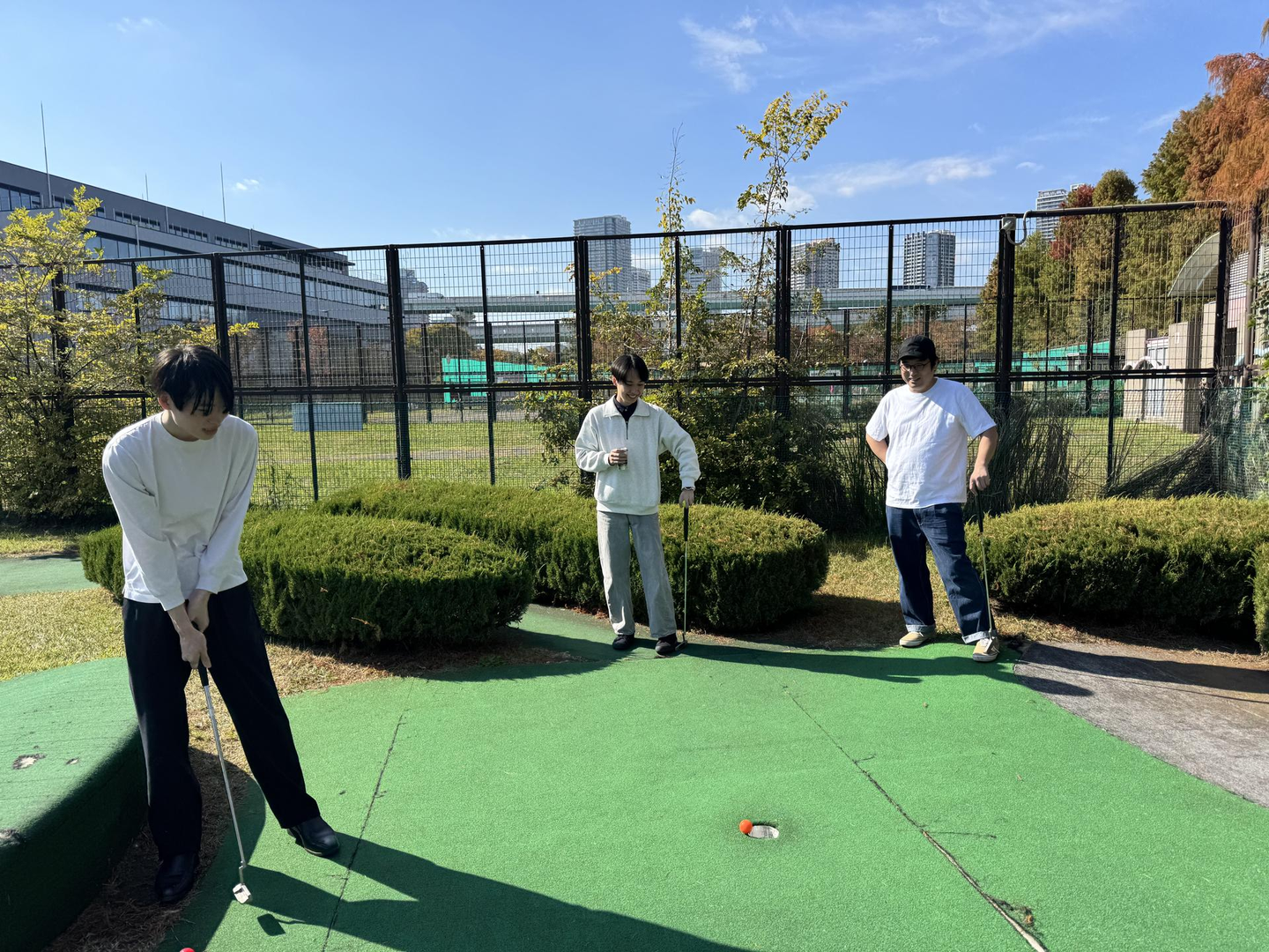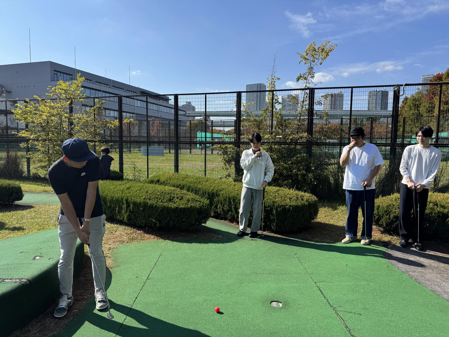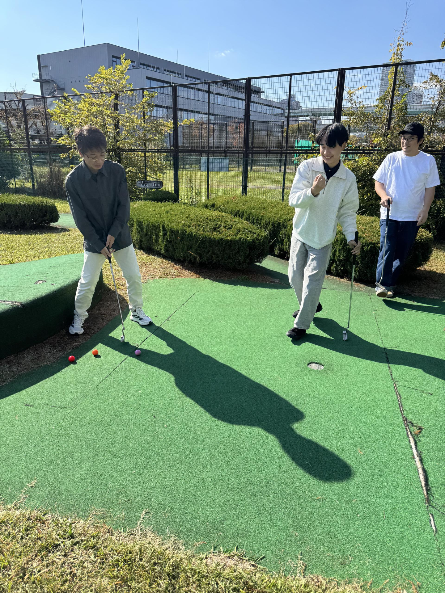 今回のメインはパターゴルフ。9ホールだけのミニコースながら、予想以上に盛り上がりました。
