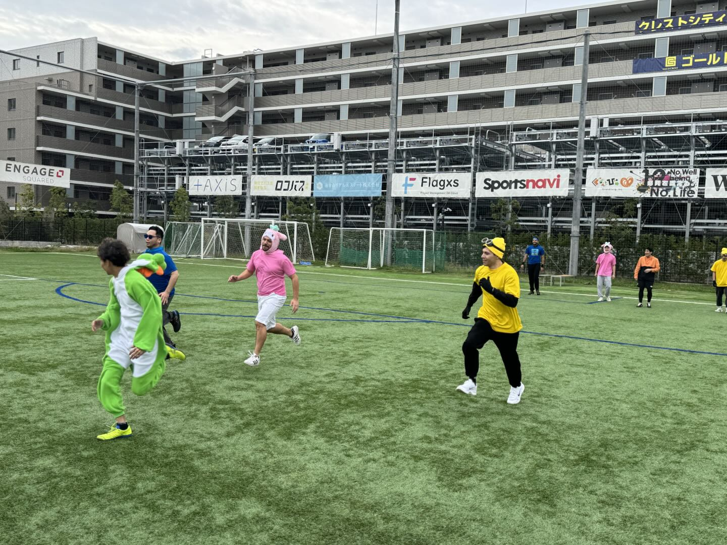 今年は開催日がハロウィンだったので、ブルー、グリーン、イエローの4チームに分かれて仮装対決も兼ねたチーム戦に挑戦。