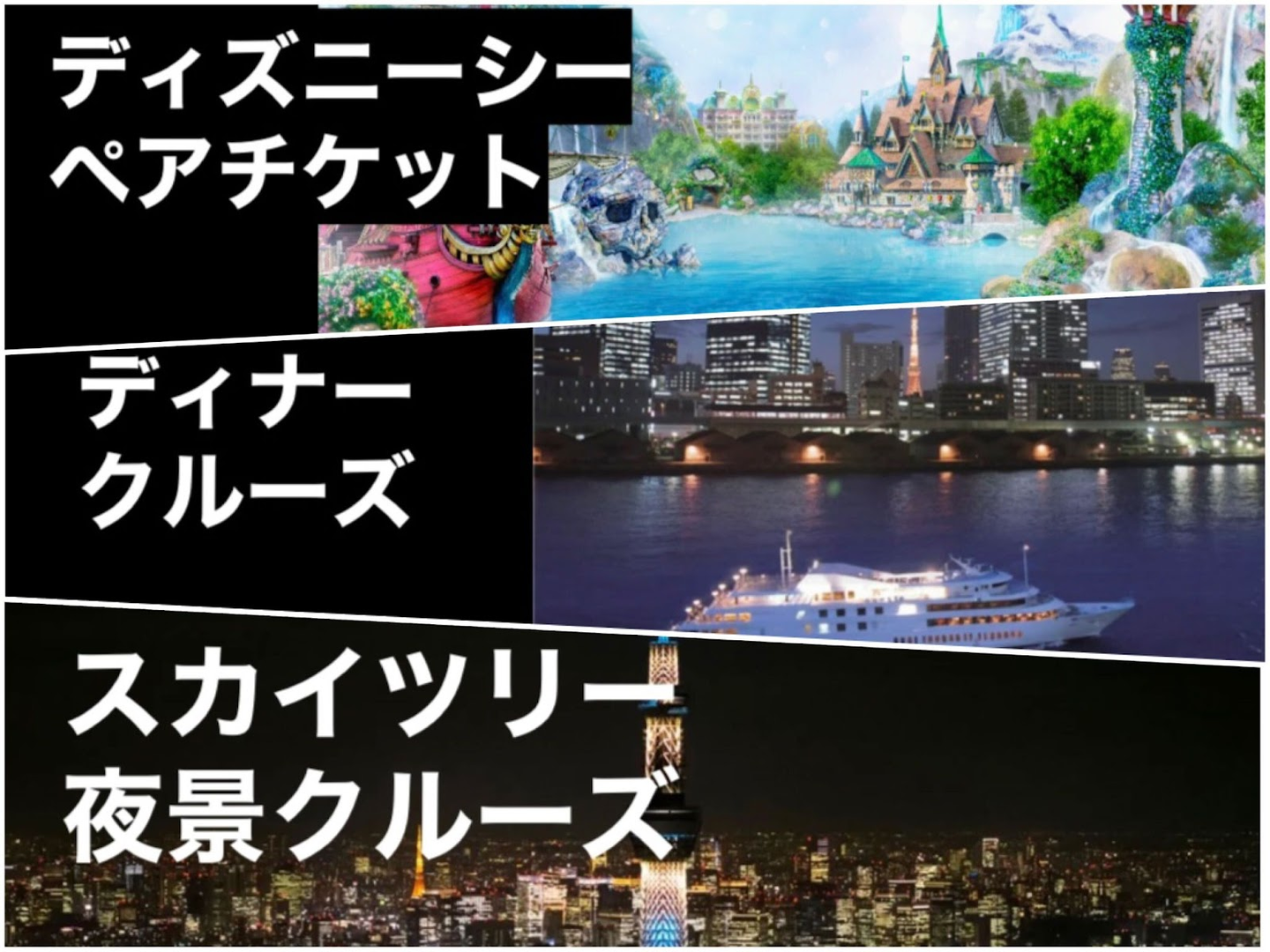 ヘリコプター・ディナークルーズ・ディズニーペアチケットが!