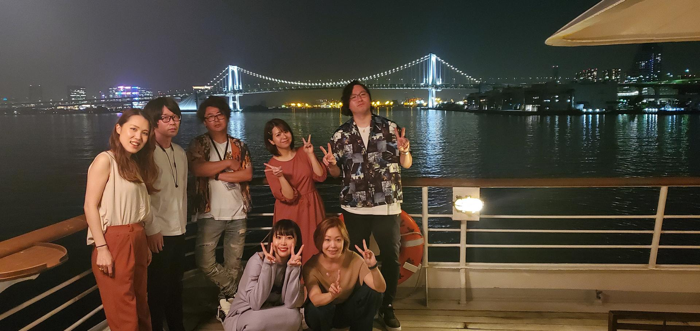 クルーズ船で納会を行った際の写真。黒木:一番左
