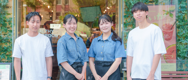 「世の中に健康的な文化をつくろう!」と言っても、自分たちがそれを実践できていなかったら、何も伝わりませんよね。私たちは、「体は食べるものでできている」という考えのもと、健康的に持続的に楽しく働くことができるために、食事のほか、運動・睡眠・精神的な安定を重視します。