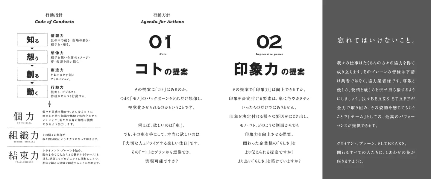 展示会ブースやショールームなどの空間デザインを主軸とし、あらゆるクリエイティブを創出し続けるBEAKS。空間デザインという小さな枠におさまらず総合的なクリエイティブプロデュースによって、競合他社と一線を画しています。