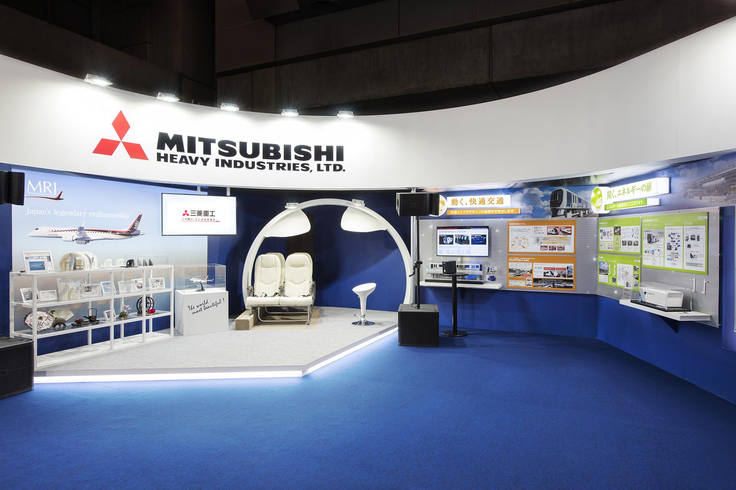ブースに引き込むため仕掛けづくりはコンテンツを主力に。MRJのデザイナーやデバイスの開発担当者、ブランド企画室のインタビュー動画をフックにし、ブース内のプレゼンテーション(MC)で解説したんです。結果、ブースがあふれるほど人だかりになりました。これは今でも忘れられない光景として焼きついています。