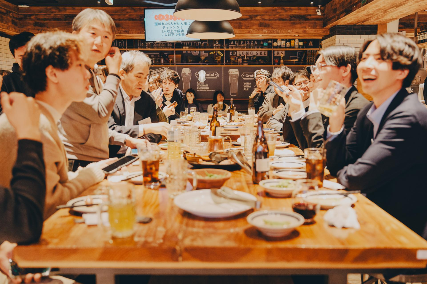 チャレンジクイズのあいだはもちろん、忘年会ではさまざまなメンバー同士交流があり終始にぎやかな雰囲気でした!会場では席の移動が自由だったので、普段はあまり話せない方とのお話しもたくさんできる機会になったと思います。会場も広々としておりお料理やお酒も充実していたので、みなさんの交流の手助けになったのではないでしょうか🍳