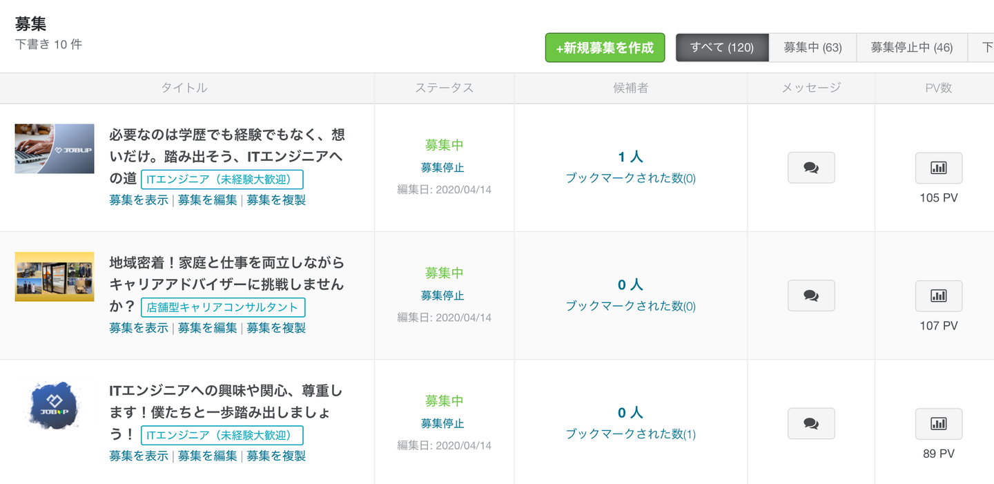 今まで出してきた募集の数です。半端ない掲載数ですね!