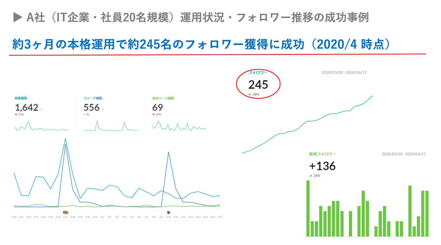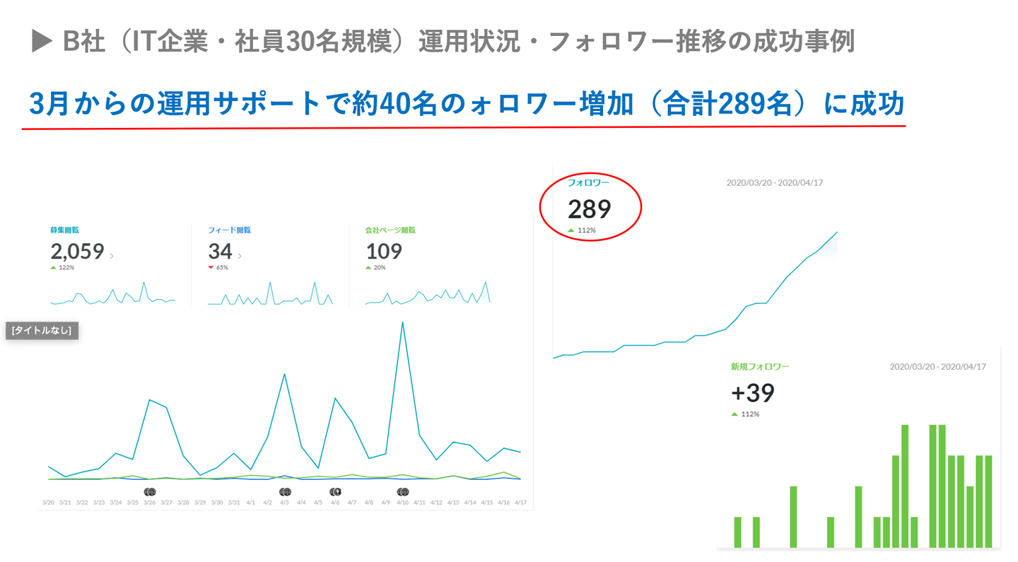 業界・サービスの魅力はもともとありましたが、求職者にもどんな仕事があるのかを明確に打ち出す事によってフォロワーが爆発的に伸びました。