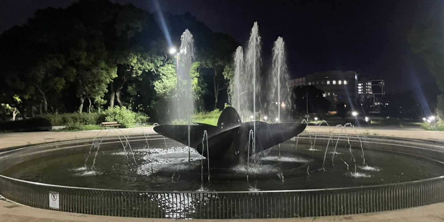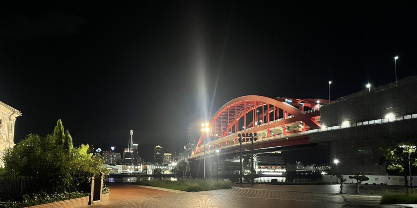 当日は神戸港の夜景🌃や停泊中の客船🛳️、六甲山のシルエット⛰️がとても綺麗でした。折り返し地点は、前回までの神戸マラソンのゴールだった市民広場奥の南公園の噴水です⛲️。