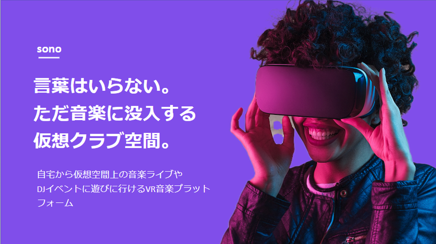 私が今グローバルワークスで挑戦している、VR音楽プラットフォーム『 sono 』は、アーティストやDJがVR空間上でイベントを開催して収益を得られるサービスです。