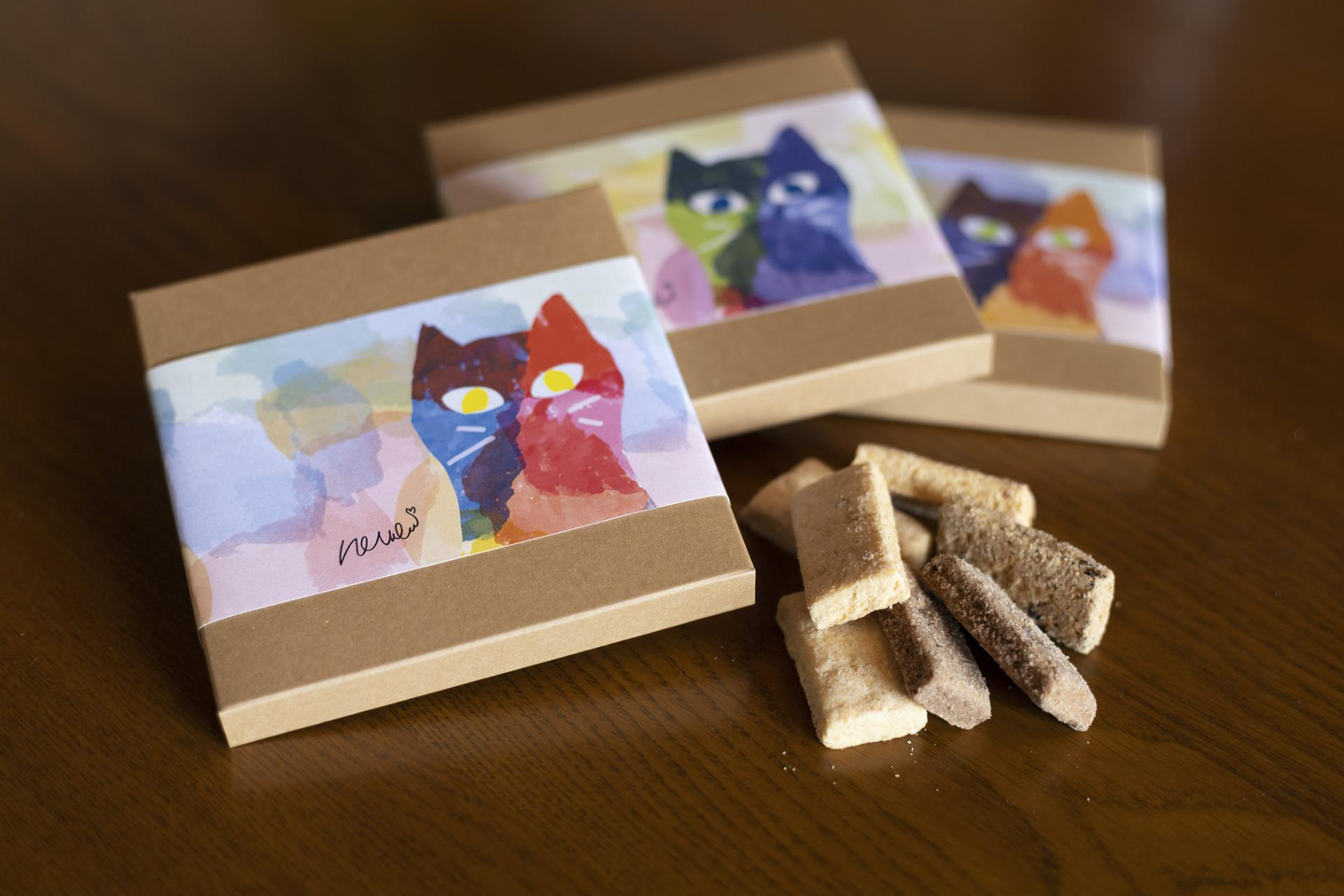 福田:中身のクッキーの見た目と箱のクラフト感、そしてギフトにも使ってほしい、ということを念頭に置きながら、猫のもつ仕草と紐付けながらデザインしました。