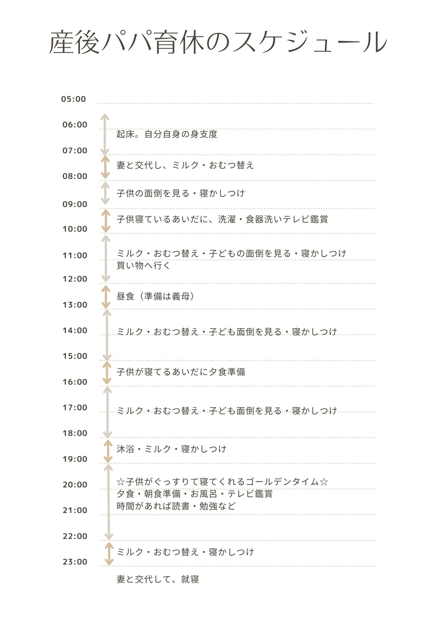 伊東:昼間と夜で夫婦で分担して、産後パパ育休中はこのようなスケジュールでした(スケジュール表参照)。