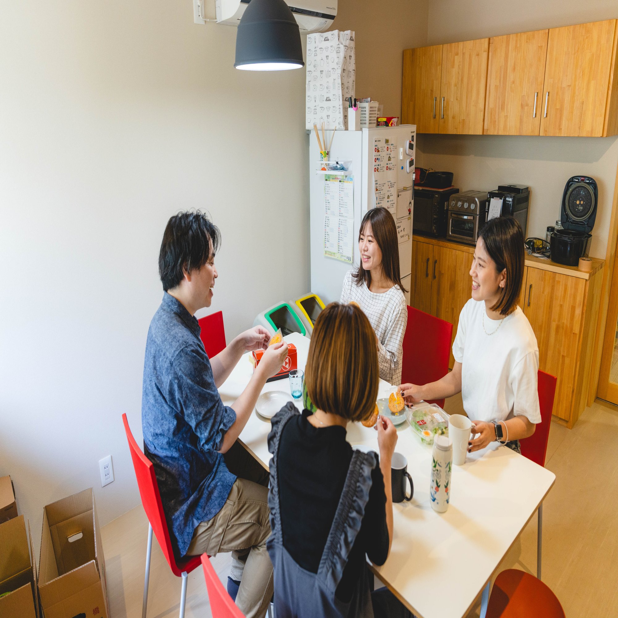 お昼休みは、普段の業務で交流のないメンバーと話せる時間。とても楽しいです。何気ない会話から新しいアイデアが出ることも。