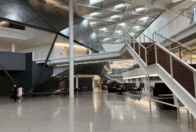 Metaオフィスの中はこんな感じになっており、四角い箱の部屋がズレて積み上げられておりデザインもかなりおしゃれです。従業員の仕事へのモチベーションなどにも繋がっているんだと思います。