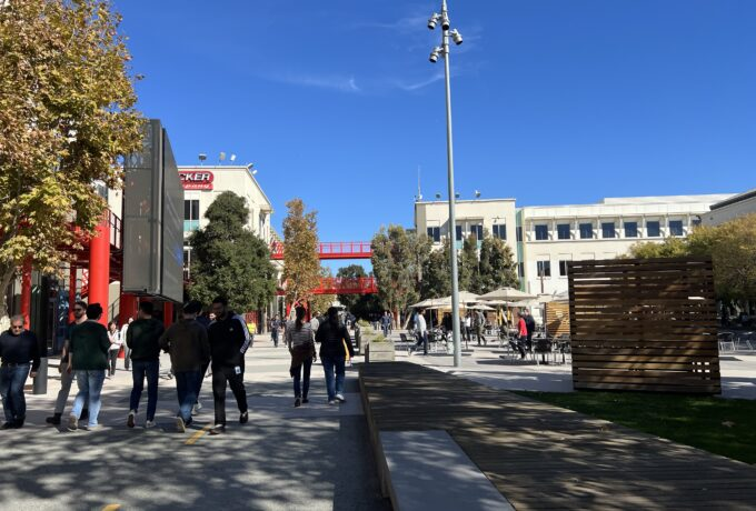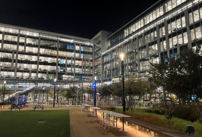 11月4日に弊社社員の友人がMetaでエンジニアをしていることから、Metaオフィスのツアーを実施していただきました。彼はMetaで5年間ソフトウェアエンジニアとして働いており、Oculus QuestのOS開発をメインに担当しています。Meta本社に入った時にオフィスを見てとても驚きました。なぜならオフィスではなく1つの街だったからです。たくさんのレストランやカフェ、無料で修理できるバイクショップ、床屋、スポーツセンターなどオフィスだけで生活できる物が全て揃っている印象を受けました。レストランに関してもインド料理やラーメン、ハンバーガー、アイスクリームなど様々な文化を取り入れているようでした。レストランは基本的に昼に空いていますが、朝と夜でも幾つかのレストランは空いているようです。また、聞くところによると元ディズニーのデザイナーがオフィスをデザインしたみたいです。