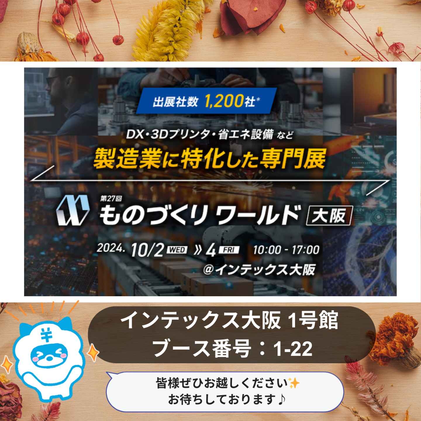 『ものづくりワールド』 1号館 ブース番号1-22 へ