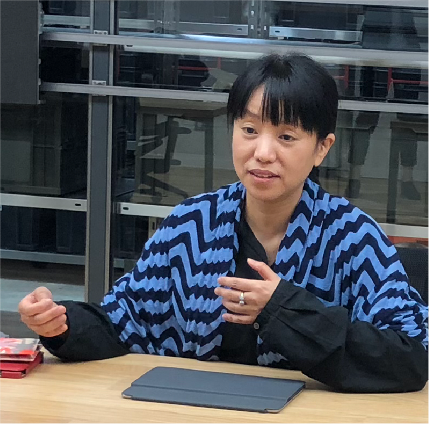 能勢 先程、オフィスの外から拝見させてもらいましたが、オフィスに置くことを前提として制作された作品として、素晴らしい解が与えられていると思いました。オフィスにいると環境の変化はわからないですが、平川さんの作品は外界の変化を反映して、一度も同じ像を結ぶことがありません。たまたま外を通りかかった人も見られるのがいいですね。私が普段働いている美術館は美術鑑賞のために作られた空間ですが、この作品は働いている人たちの後ろに作品があって、それらの人たちもいる空間を含めた全体として作品を観ることができる。この眺めは新鮮に映りました。企業がコレクションした作品をオフィスに飾ることはありますが、こうした形でコミッションをお願いするということは、日本ではあまりないのではないでしょうか。