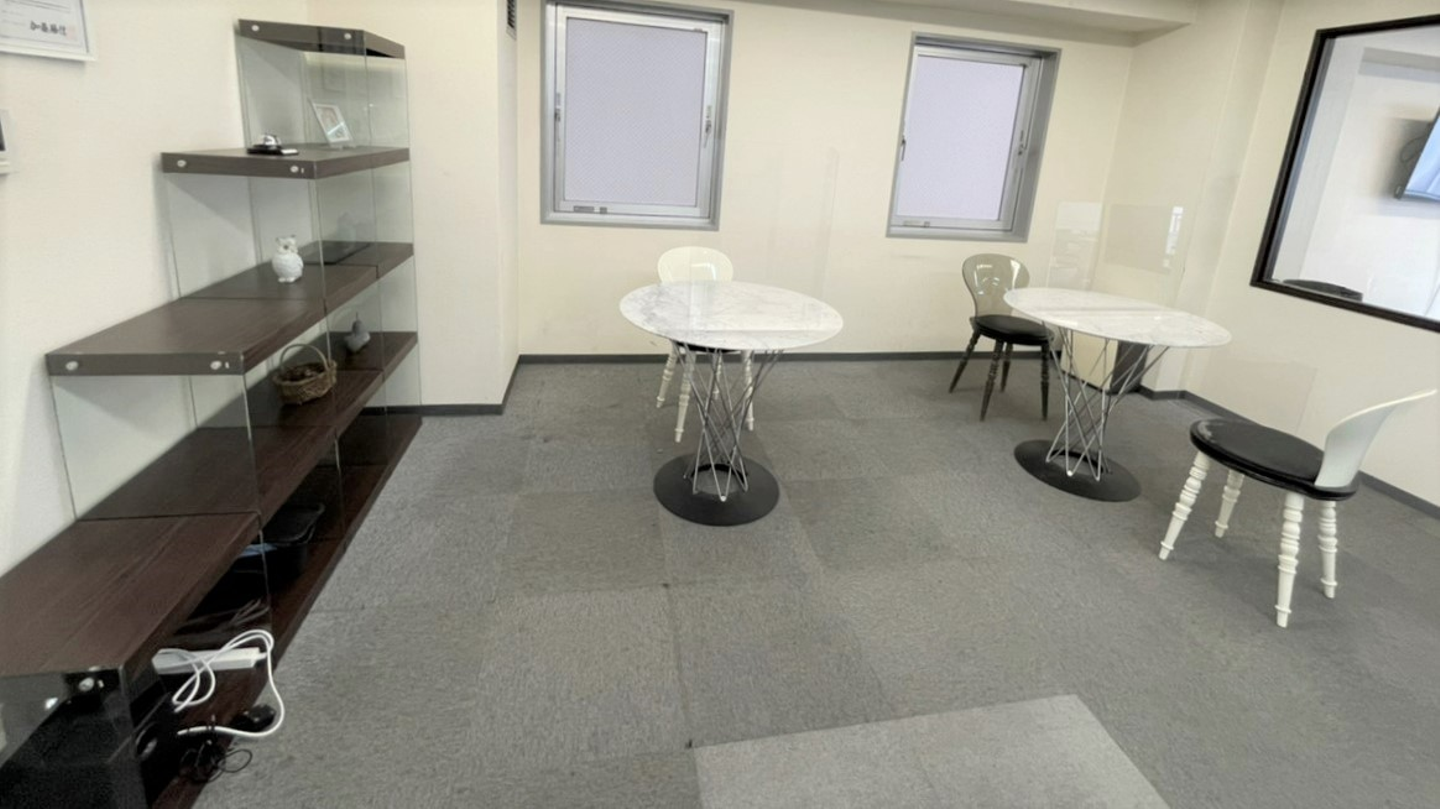 また、エレベータを降りて左に曲がり、進みドアを開けるとテーブルが設置されており、ここで商談を行うこともあります。エントランスはオフィスの顔なので、清潔感が大事ですね!