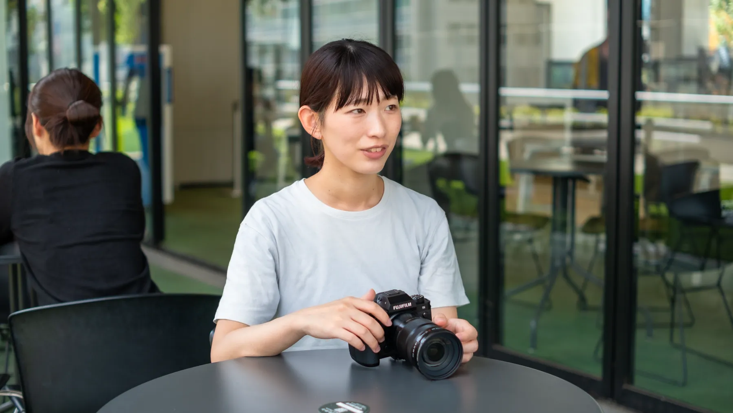 新卒でCM業界に撮影部として働き始め、出産を機にフードカメラマンに転職。レシピ動画の撮影や編集、スチール撮影などを3年間ほど経験し、もっと映像の幅を広げたいと思い、当社へ入社。一児の母。京都出身。