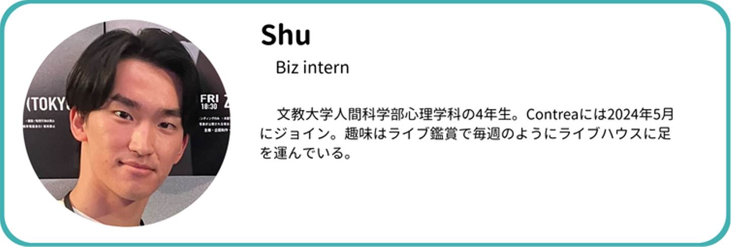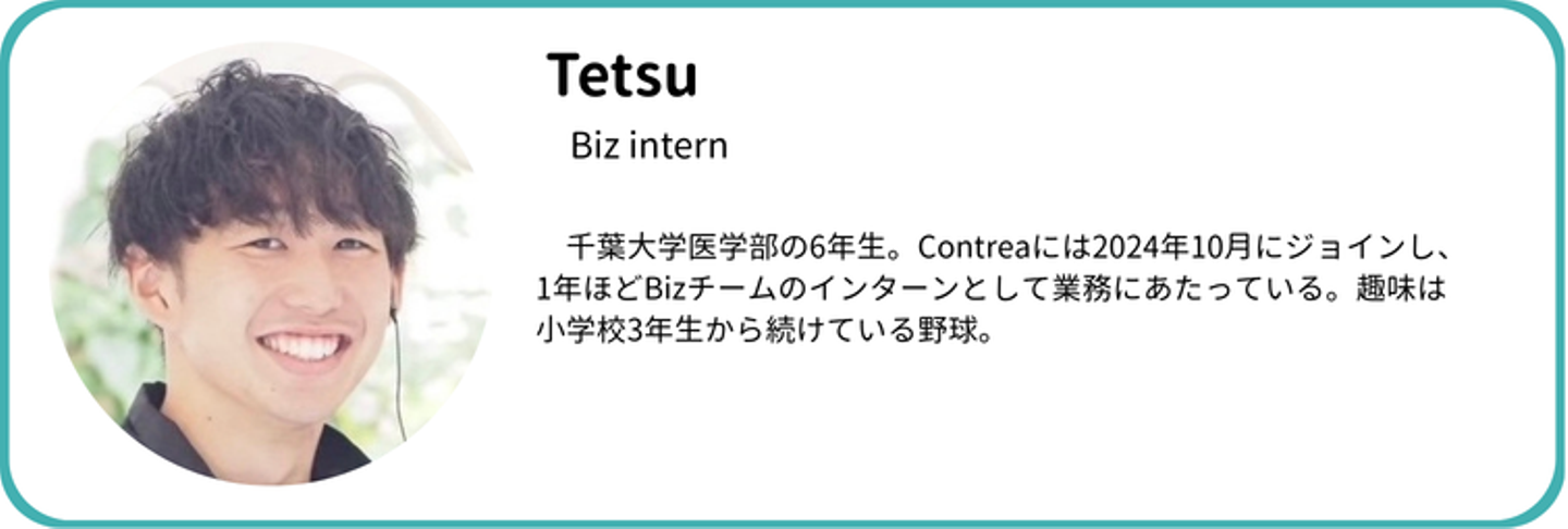 Contrea株式会社のBizチームでインターンをしているTetsuです。