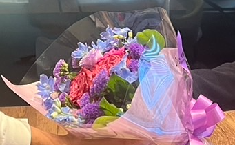 ※新しい仲間の入社が決まり、そのお祝いとして贈った花束も紫でした。