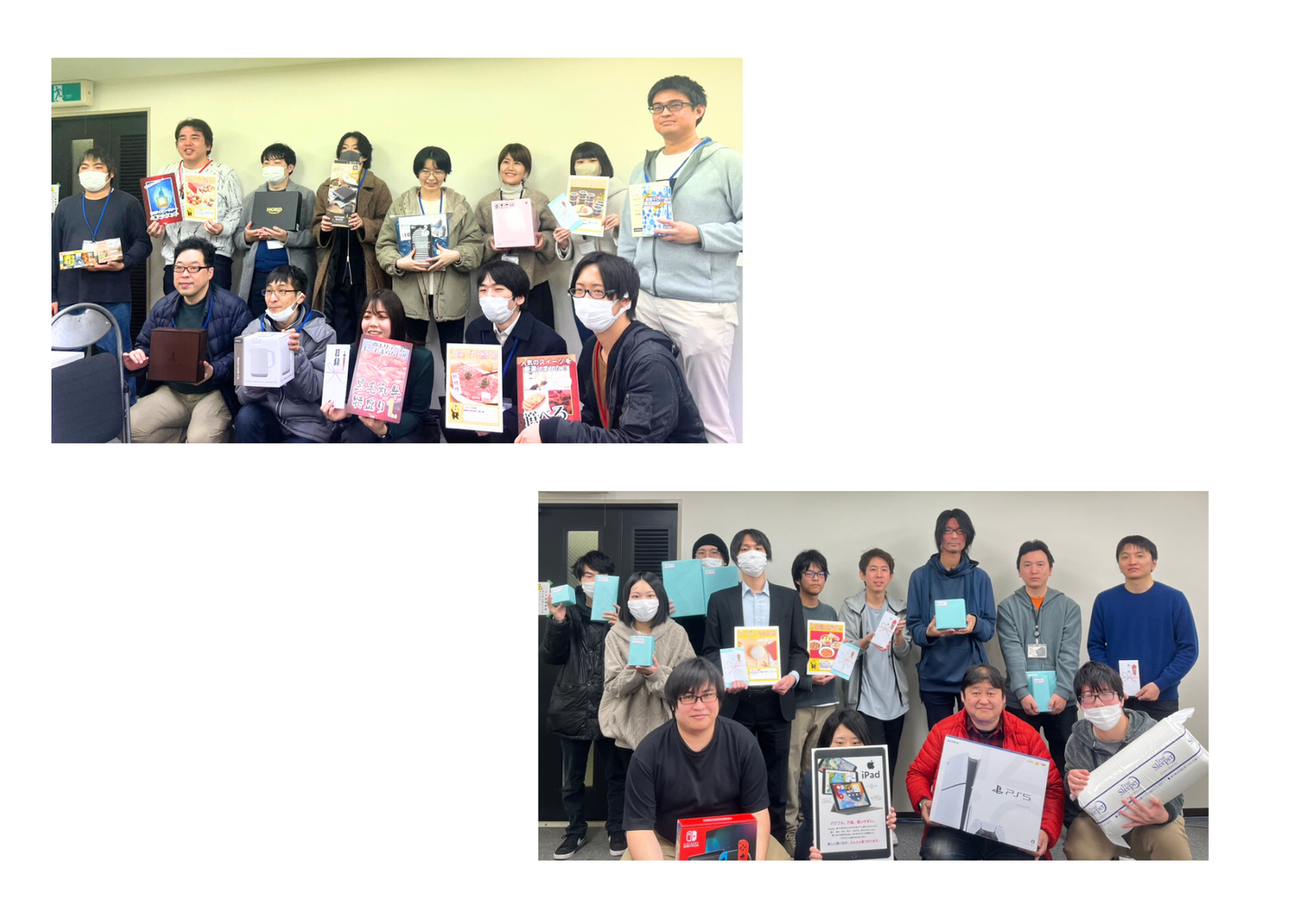 昨年の忘年会はオンライン開催でした。毎年盛り上がるのは豪華景品をかけたゲーム。