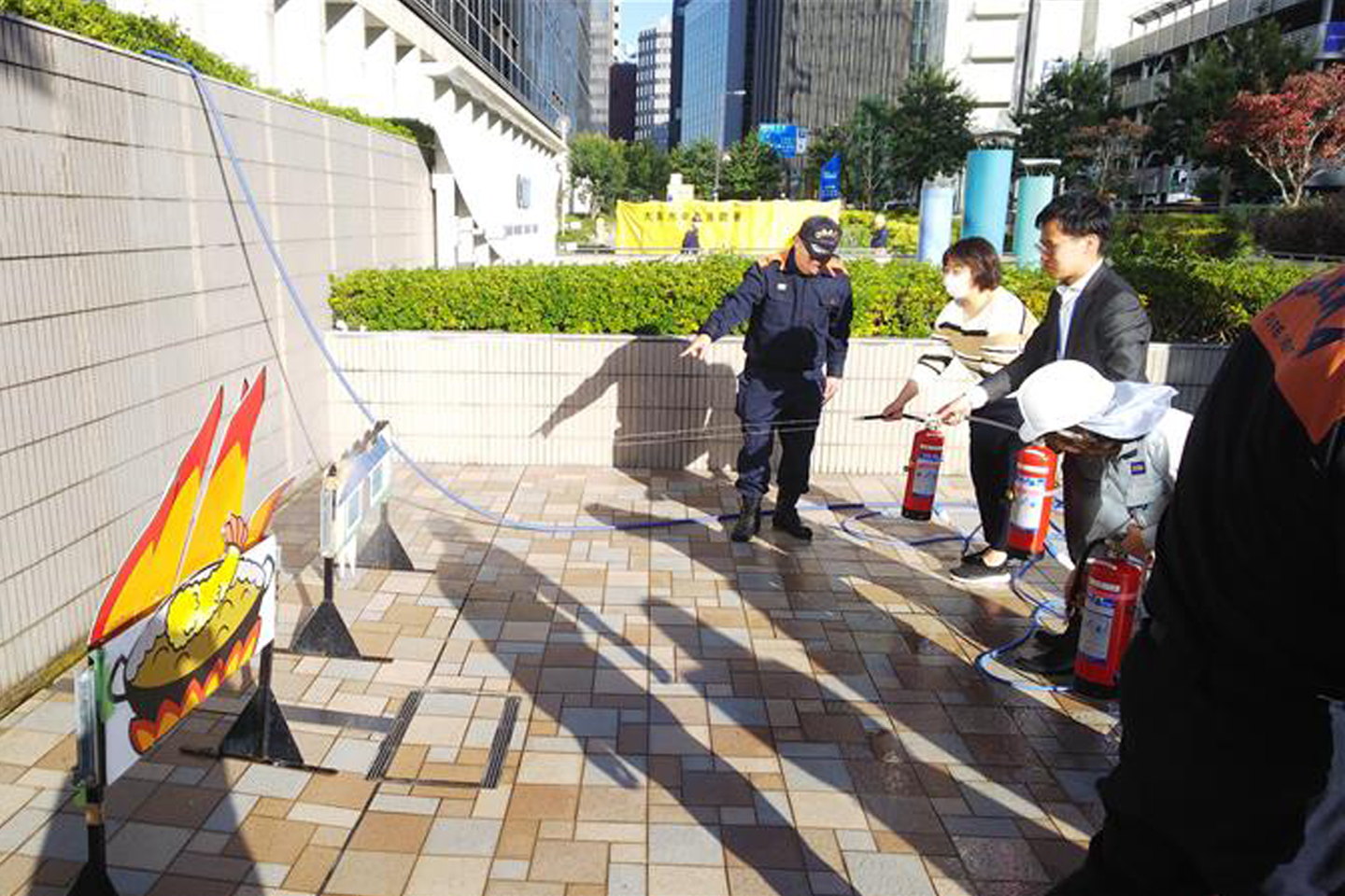 参加者全員で、水消火器訓練、煙ハウス体験、起震車体験を体験しました。