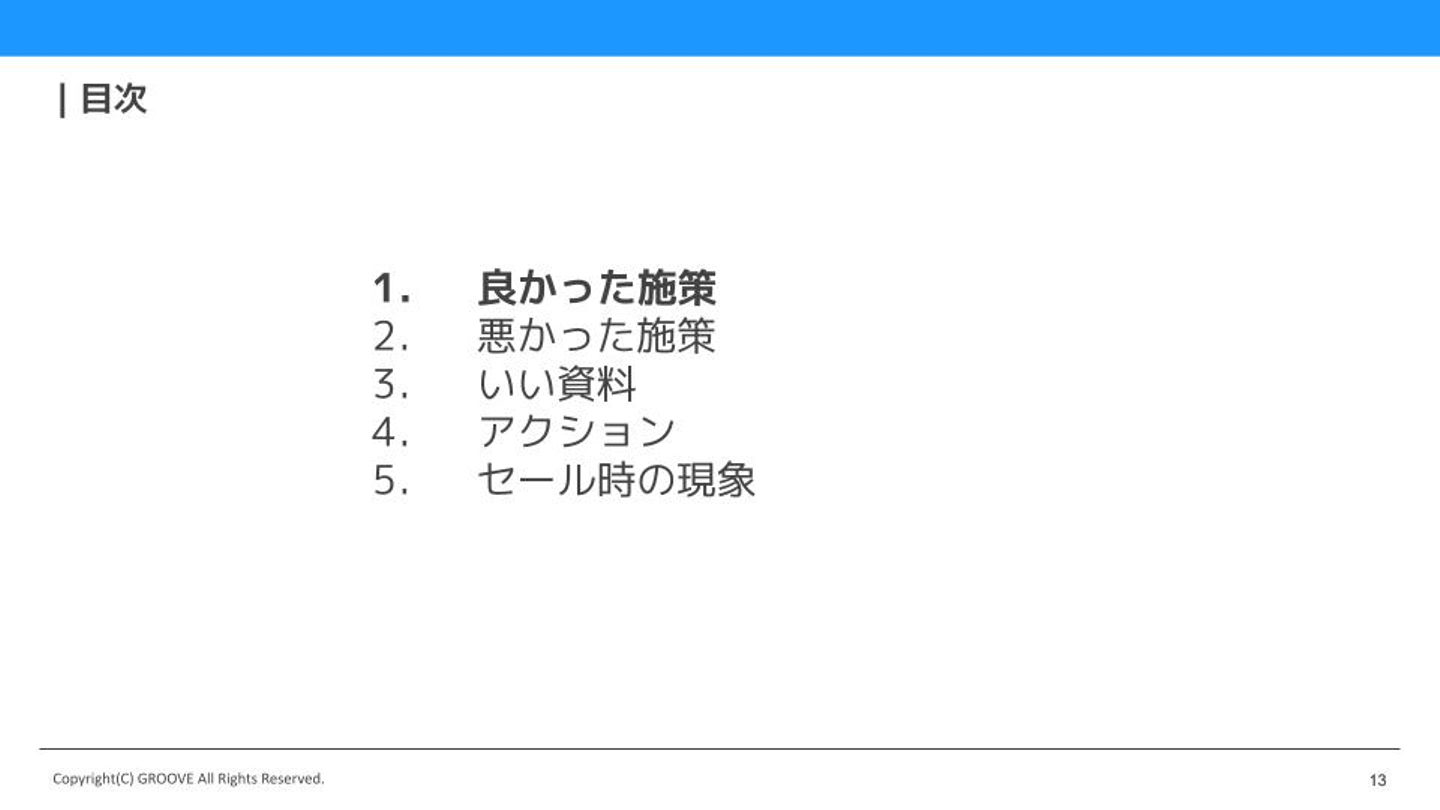 という、データ分析が強みのGROOVEらしい細かいHOW TOの具体的な話まで、濃い内容の共有会となりました。