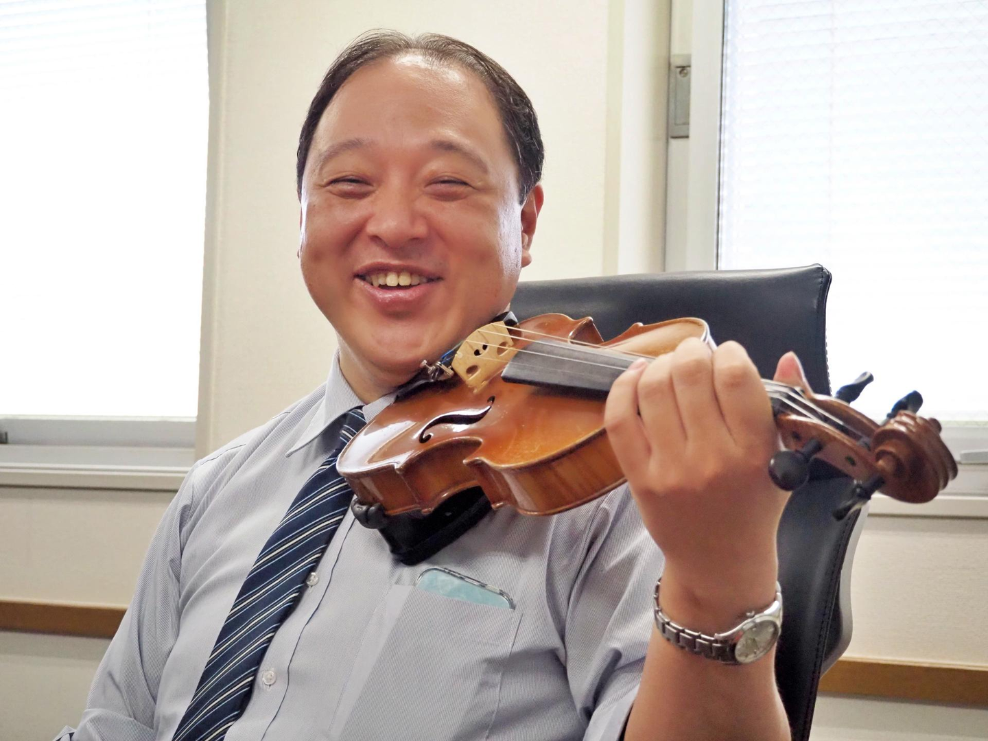 最近出会ったバイオリンを定年までに弾けるようになって、定年後は楽団に入れたらいいなと思っています。そのために今教室に通って練習しているんです!