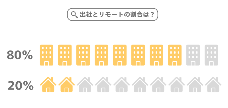 現状週1日のリモート勤務を導入しており、出社8割リモート2割という数字になっています。今後も社内の状況に合わせて柔軟に働き方を変えていく方針です!