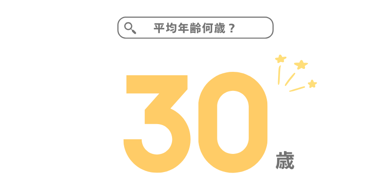 従業員の平均年齢は30歳です!インターン生も多く在籍しているため20代のメンバーが多いですが、社員は中途入社率100%なので、20代から70代まで幅広い年代の従業員が在籍しています。