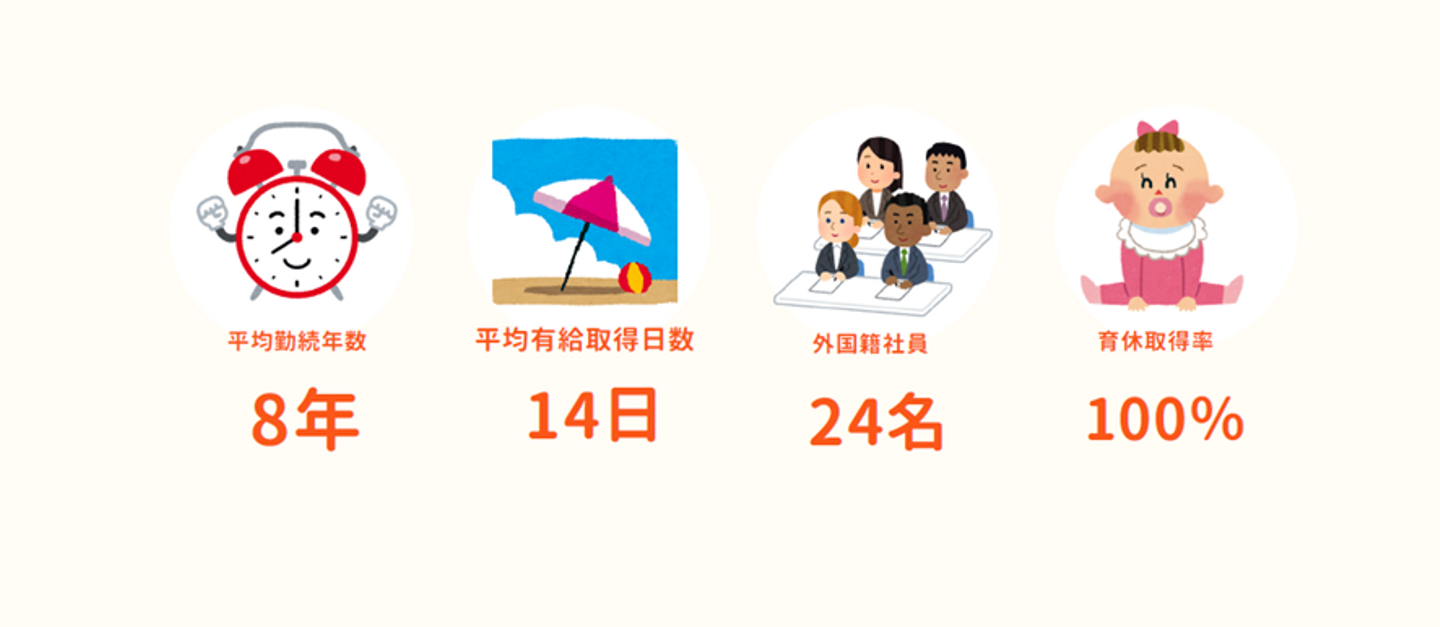 外国籍社員 外国籍社員も着々と増えています!2024年4月時点では24名の外国籍社員が勤務しています。