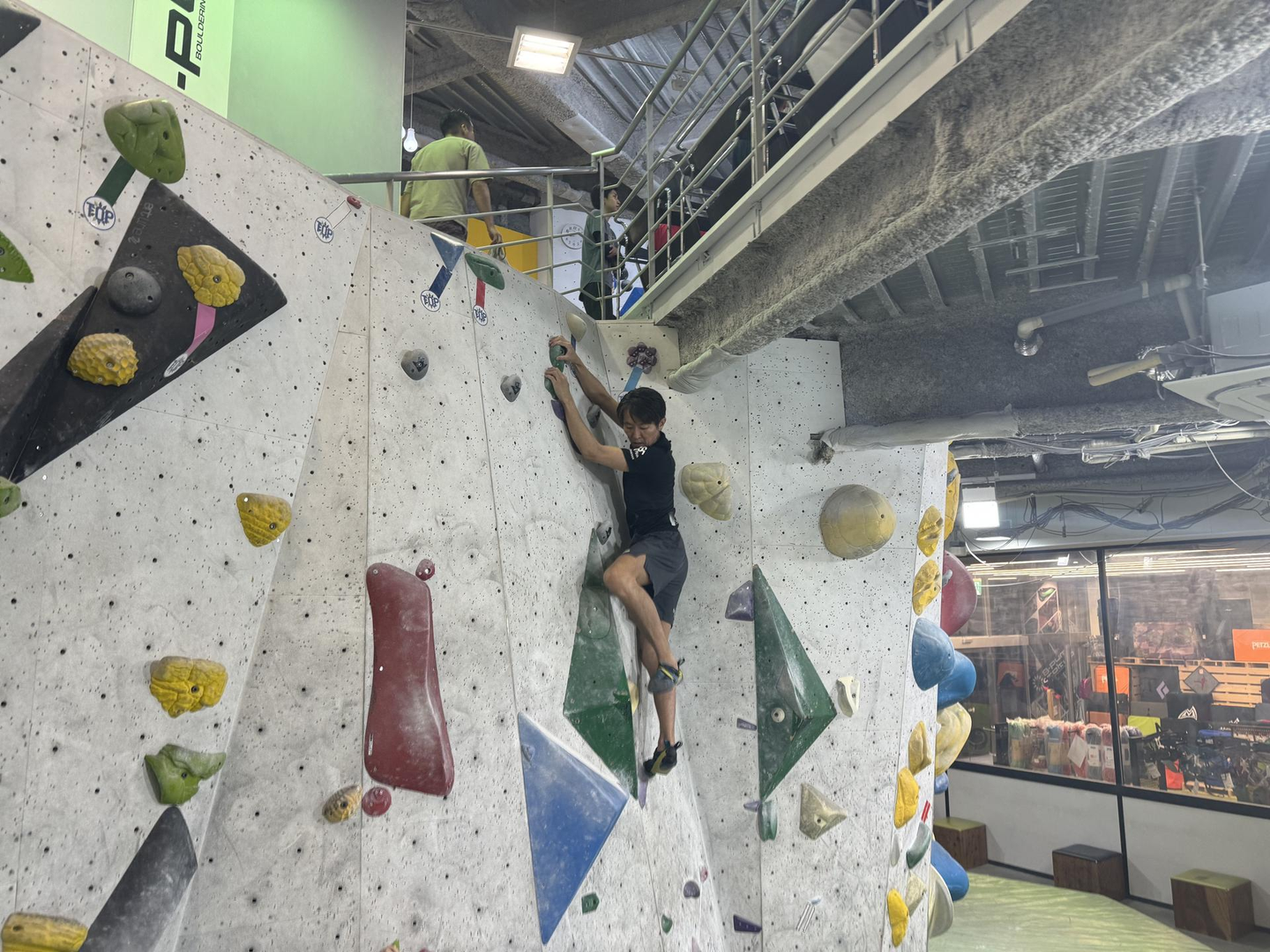 ボルダリングにどっぷりハマってしまい、先日ボルダリング用のマイシューズ(いい値段します)を購入されたとのこと。部活動以外でも、週2~3回ほどボルダリングに行っているそうで、今では部内でも上手な方だそうです。