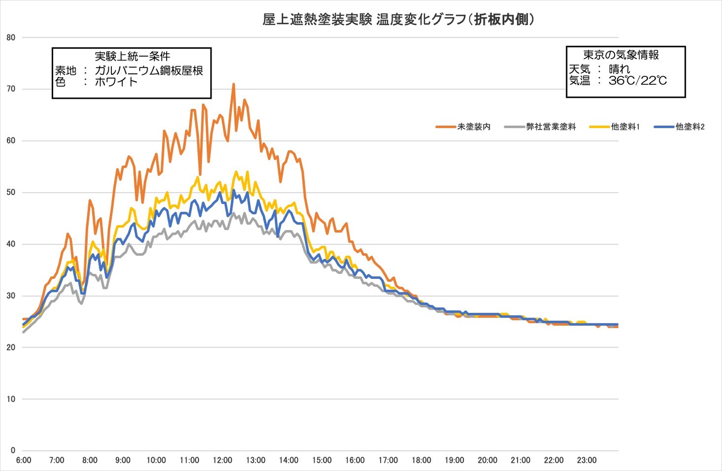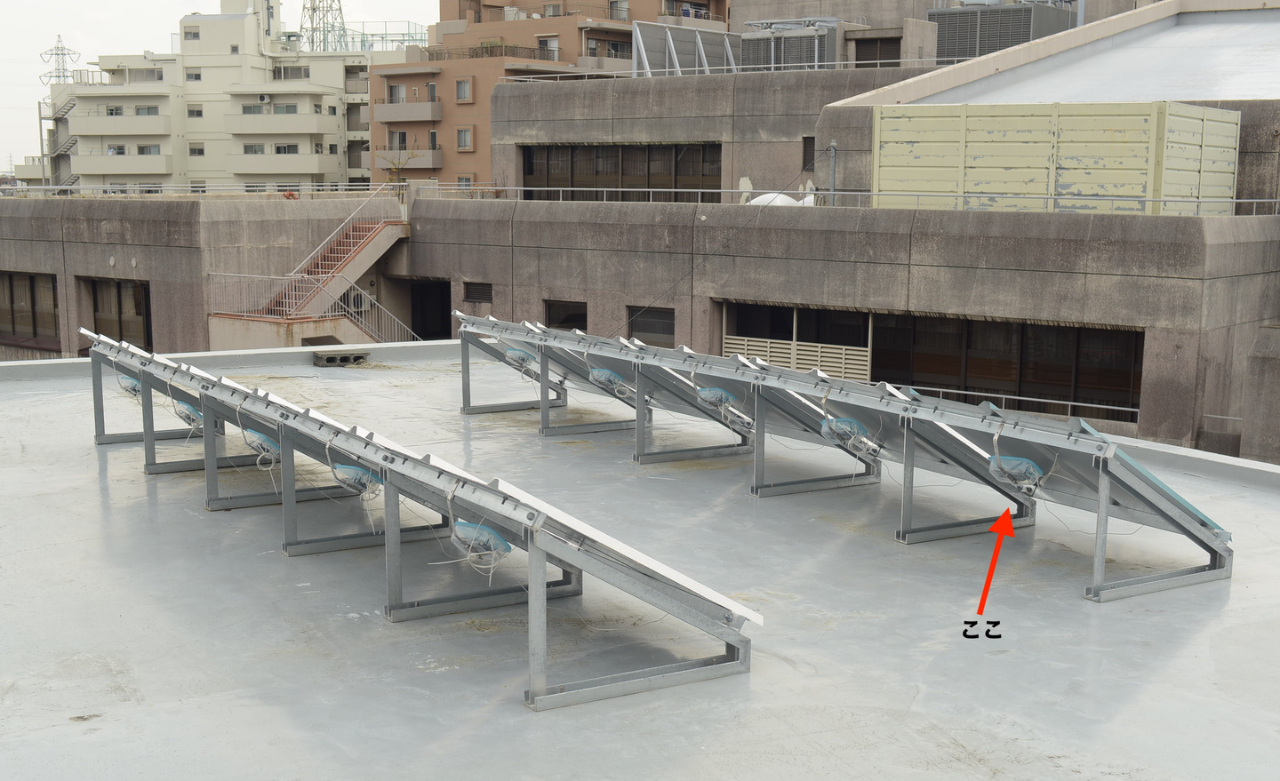 松田ホームサービスではビルの屋上をお借りして、曝露試験を行っています。 曝露試験とは何かというと、 数種類の塗料を同条件のもとで屋外に置いておき、汚れの付き方や耐久性、表面温度がそれぞれどう異なるかを調べる方法です。 こんな感じ。(2013年4月撮影) 弊社がご提案する塗料は、遮熱機能をはじめ、汚れにくかったり、ひび割れがしにくい、などのプラスアルファの性能がついているものがメインになります。
