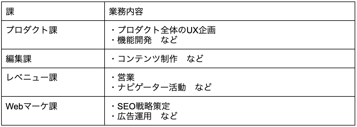 BeMARKE事業部は、プロダクト課、編集課、レベニュー課、Webマーケ課の4つで構成されています。課は分かれていますが、それぞれが横断的にコミュニケーションを取り、協力しながら日々の業務に取り組んでいますね。