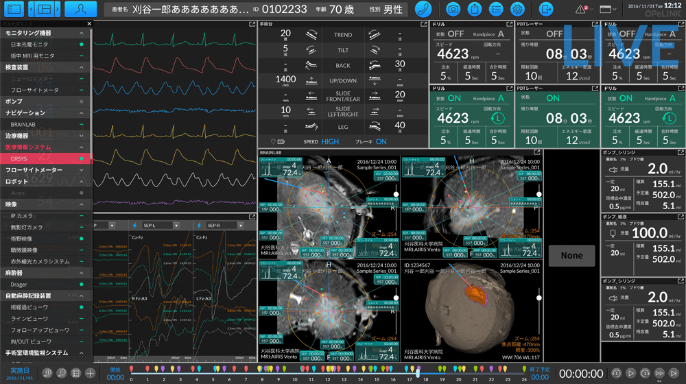 手術室で使用される、20種以上の医療機器を4Kモニタで統合表示するためのUI/UXデザインをしました。各医療機器の仕様を理解するところから始め、UI/UX検討、ビジュアルデザイン、プロトタイプ作成とユーザーテスト実施、実装用データ作成まで手がけております。