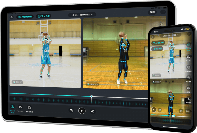 AIスマートコーチは、運動の様子を動画で記録し、見本と自分の動きを比較較しながら、AIがフォームの改善点に気づかせてくれるトレーニング支援アプリです。