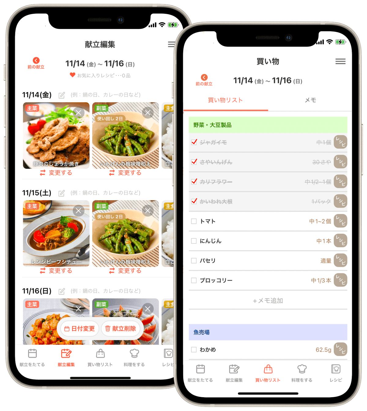 1週間の献立、買い物リストを自動作成してくれるアプリ。