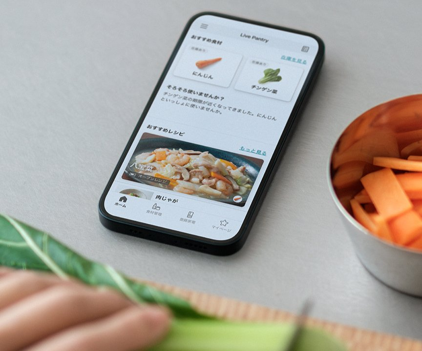 冷蔵庫の中にある野菜をAIカメラが認識し、レシピや使い切り提案を行ってくれるアプリです。パナソニック社製冷蔵庫との連携が必要ですが、外で買い物中に冷蔵庫に何が残っていたか確認したいシチュエーションで活躍しそうです!