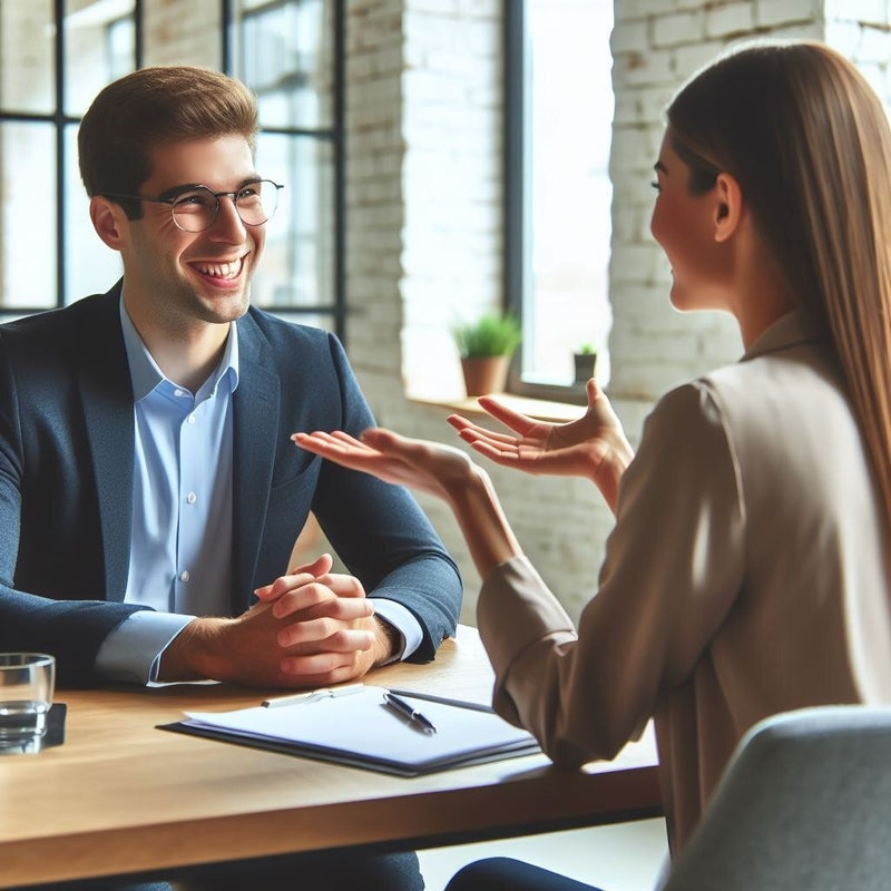 タイトル「面接官と候補者がオープンな雰囲気で会話している様子」created by Image Creator