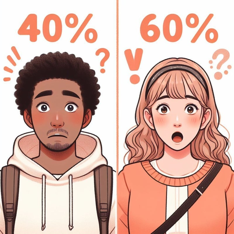 タイトル「40%と60%の違いに驚く人」created by Image Creator