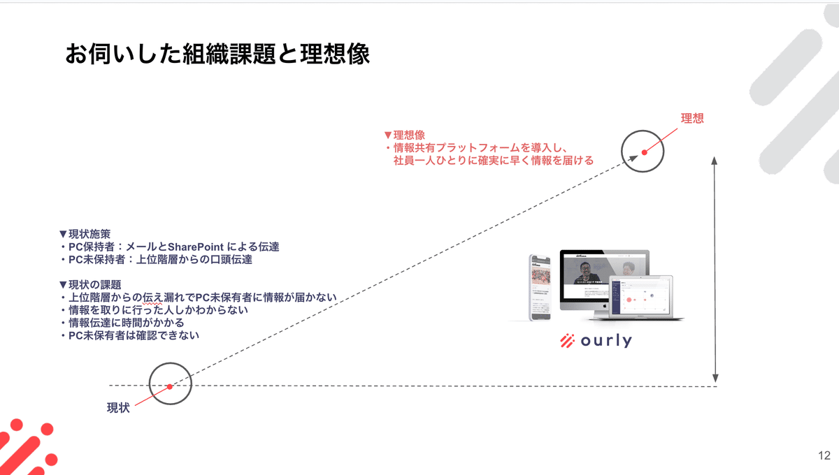「支援先のA社様の事例でして、xxの課題解決のために、ourlyをyyのように使ってみたところ、zzが要因でまったく成果が出ませんでした。なので私は貴社にご提案しません。」