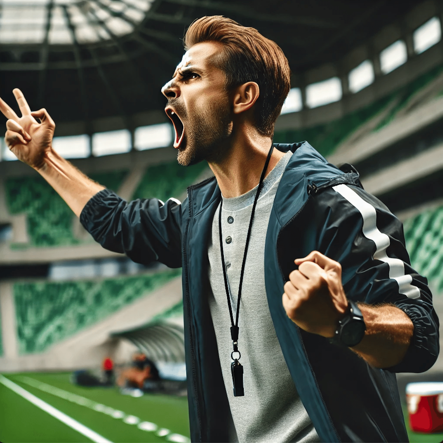 「熱烈コーチの画像を出してください」とAIにお願いしたら、これを出してくれました
