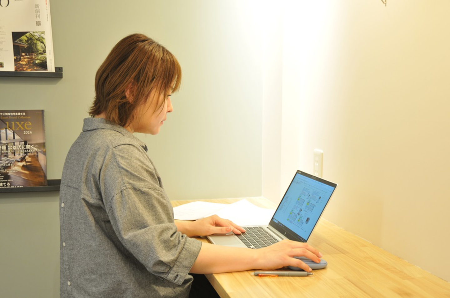 事務所で仕事しているメンバーは、共有された現場の写真や情報を見て必要なものを想定したり、自分から各所に確認したりしています。